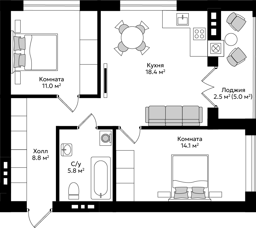 2 спальни
